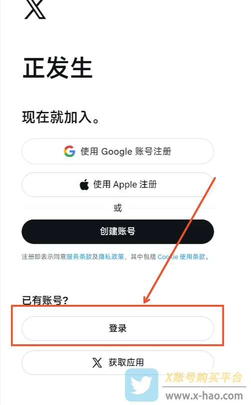 1、打开X官网,点击登录按钮。